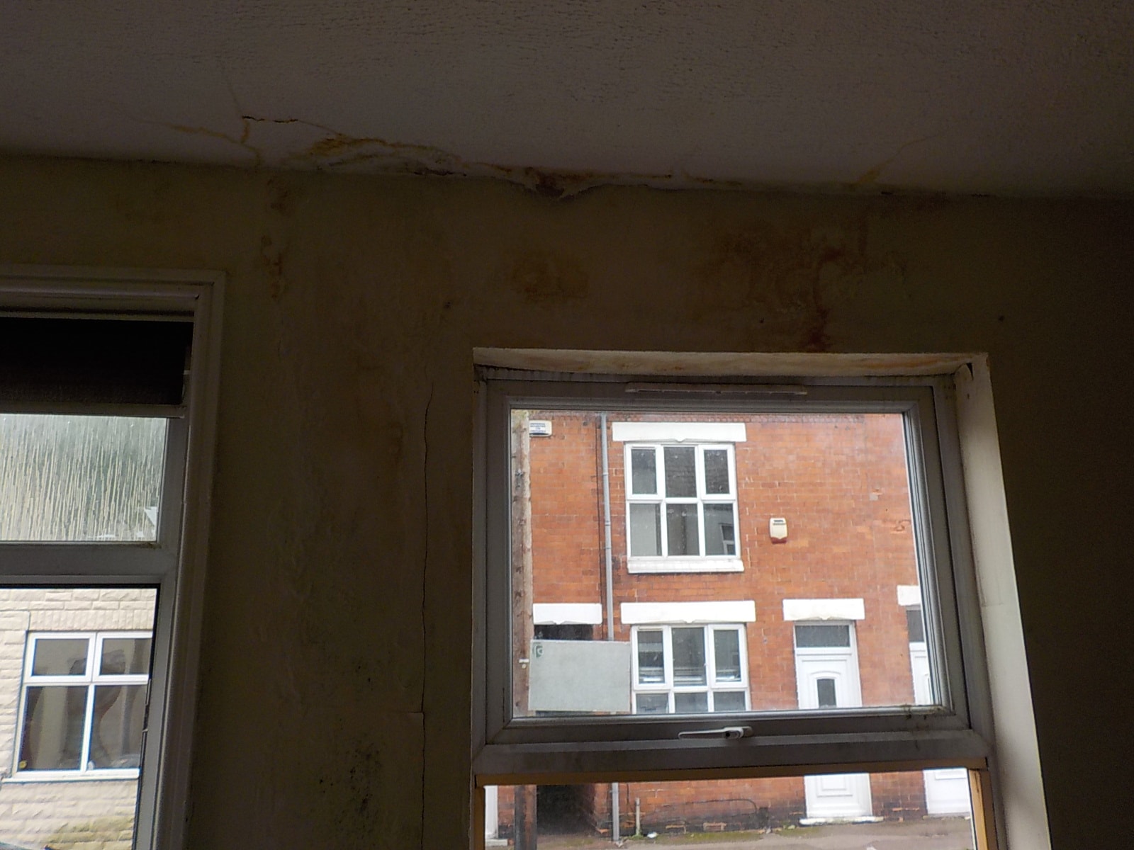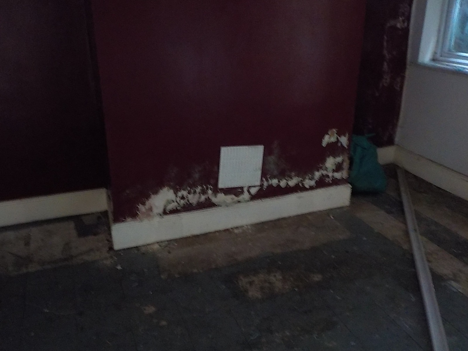 Lounge: Damp damage had spread into this room, indicating prolonged moisture exposure.